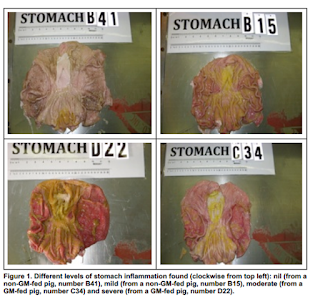 of severe stomach inflammation – 32 percent of GM-fed pigs compared to 12